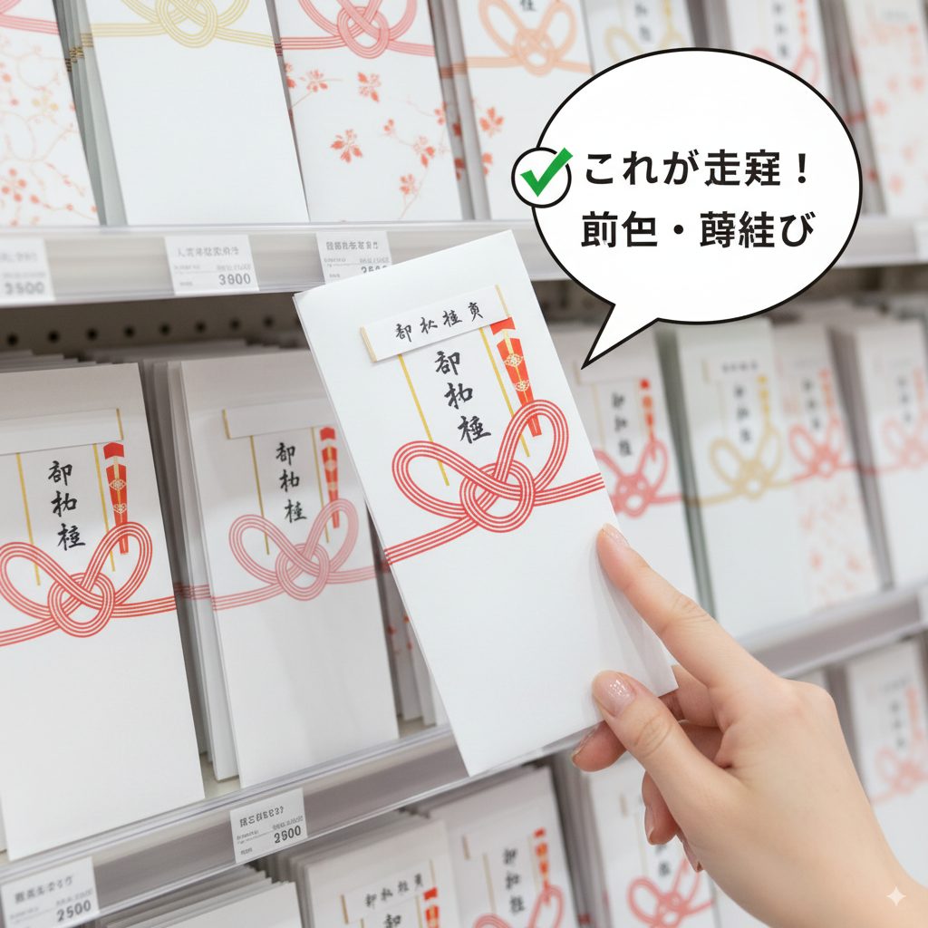 まずはお買い物からスタート!でも、お店でのし袋を前に固まっちゃう…なんてことにならないように、最初に「正解」を写真でしっかりインプットしておこう。これさえ覚えておけば、迷うことはないからね。