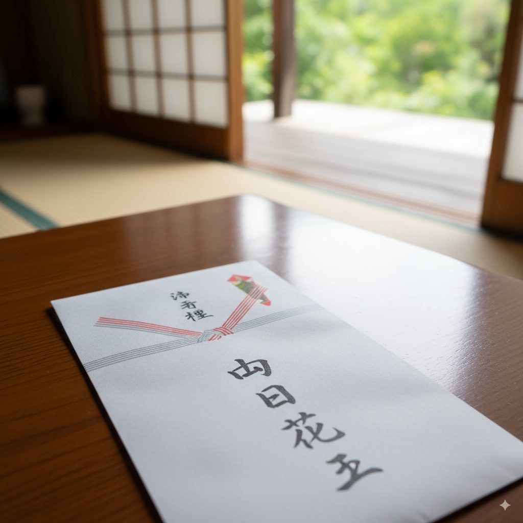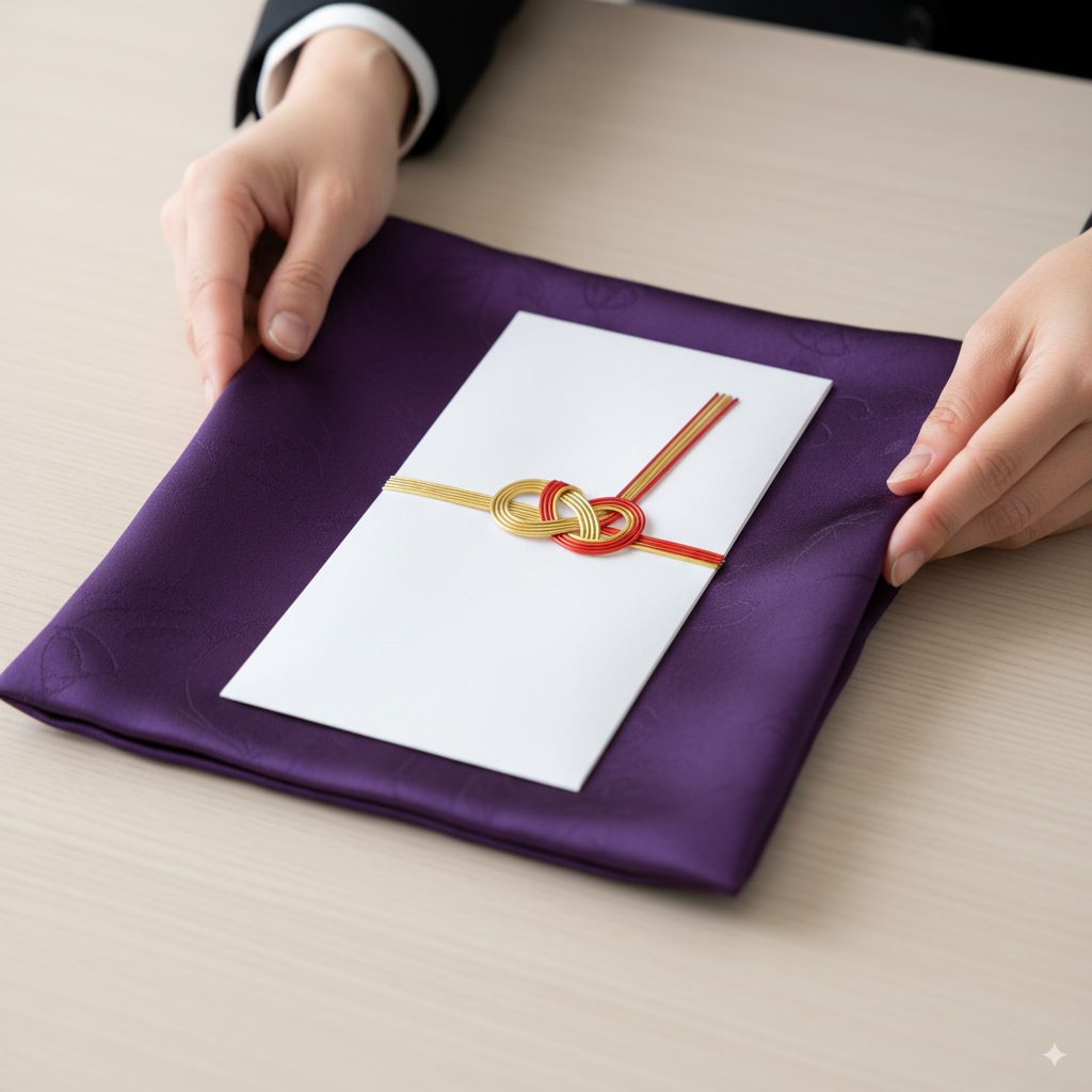 のし袋をそのままバッグから出すのは、実は少し不作法なんだ。もし持っていたら、袱紗(ふくさ)という布に包んで持参すると、あなたの敬意がより深く伝わるよ。