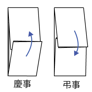 中袋を外袋に戻したら、裏側の折り方を確認しよう。「幸せがこぼれ落ちないように」「良いことが上向きになりますように」という願いを込めて、下側の折りを上に重ねるのが吉だよ。これは慶事の基本だから、覚えておくと結婚式とか、他の場面でも役立つ豆知識だよ!